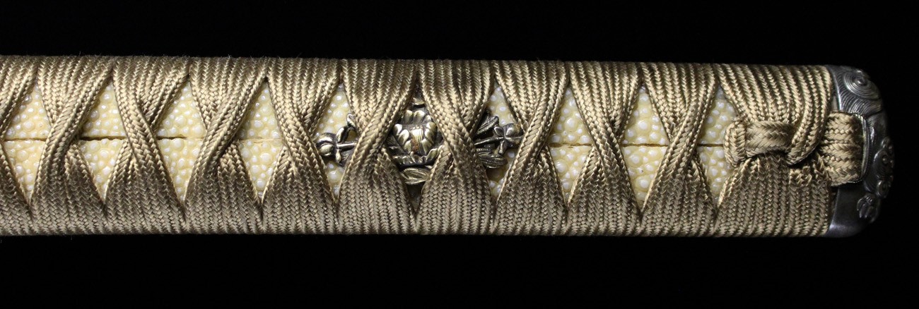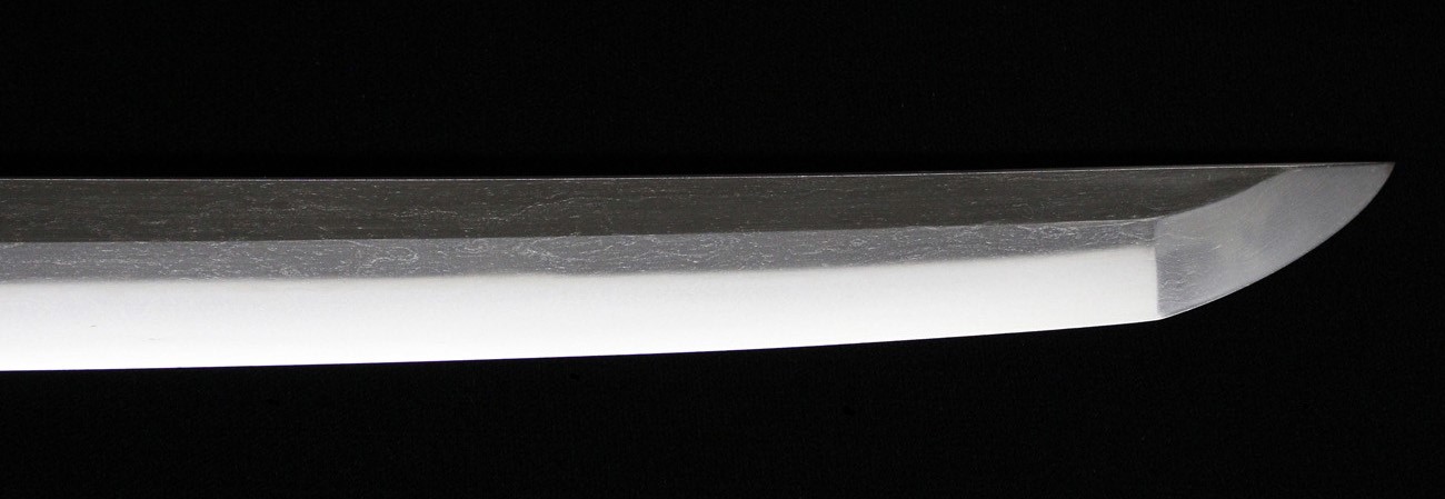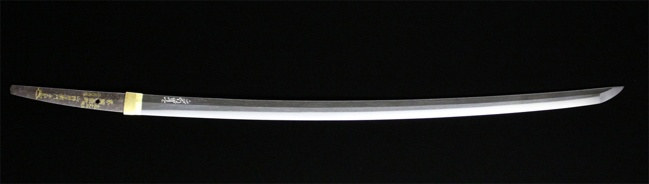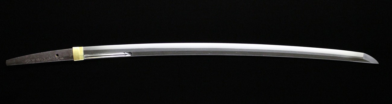 金房派は大和の手掻派の末流にて室町時代後期、永禄頃に大和の興福寺の近くで作刀して栄えます。 政次は金房派棟梁にて兵衛尉を任官し、戦乱期に切れ味の良い刀や槍を制作しており、戦国大名の池田恒興の特別注文に応じて制作した刀なども現存しています。 黒田節で有名な日本一の槍(日本号)や、本田忠勝の蜻蛉切と称する槍なども金房派のものです。 本刀は、直刃基調に焼き刃が高く、浅い小互の目を交えて刃中明るく、足と葉が良く入り、佩き表に素剣、佩き裏に梵字の生彫りを有し、頗る健全で出来が優れています。 当時より切れ味の良い業物として知られており、1595年(文禄4年)高野山で切腹した、豊臣秀次の介錯にも同作が使用されました。銘「南都住金房兵衛尉政次」介錯した雀部重政(ささべしげまさ)の子孫にその刀は受け継がれて近年、大阪城天守閣内の博物館へ寄贈されています。 本刀は、試し切りの名人である山野加右衛門永久が寛文二年に、試し切りを行い業物として、その切れ味の良さを茎に刻んでいます。江戸新刀などを用いた試し切りが多い中にあって、本刀の様に古刀を使用した試し切りの例は少ないため、特別な伝来であったことが解ります。清浄の感が伝わるばかりでなく、所持者の信頼を違えない優刀であり、本間薫山(古刀研究の権威)氏の鞘書にて、典型作と称賛される裁断銘入りの優品です。