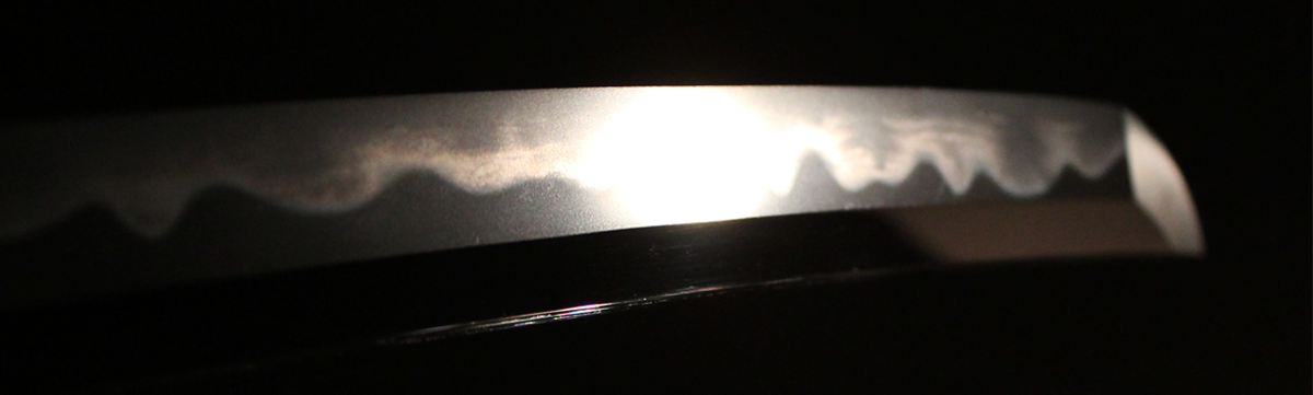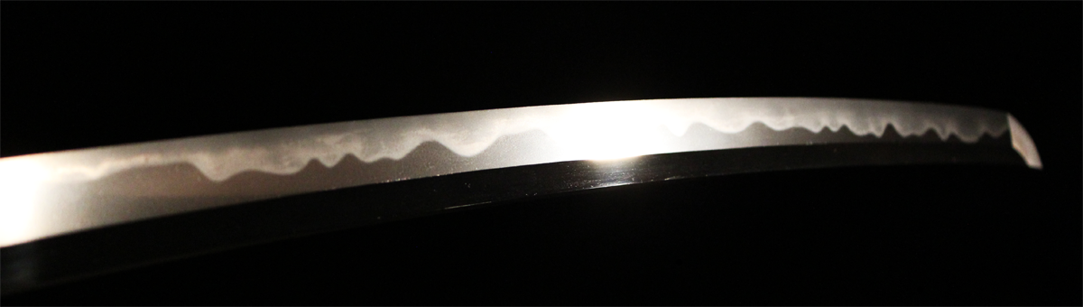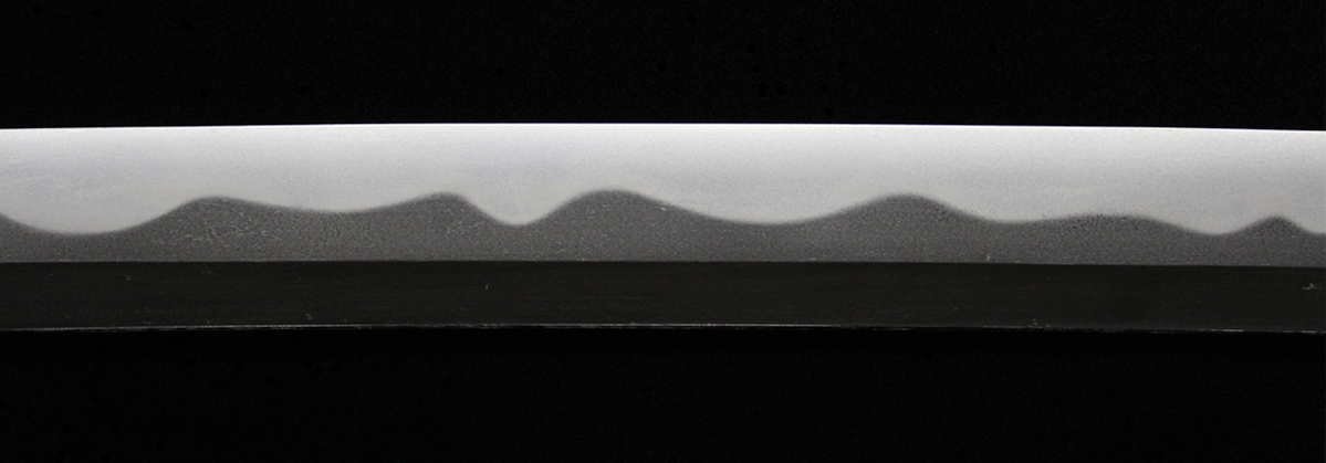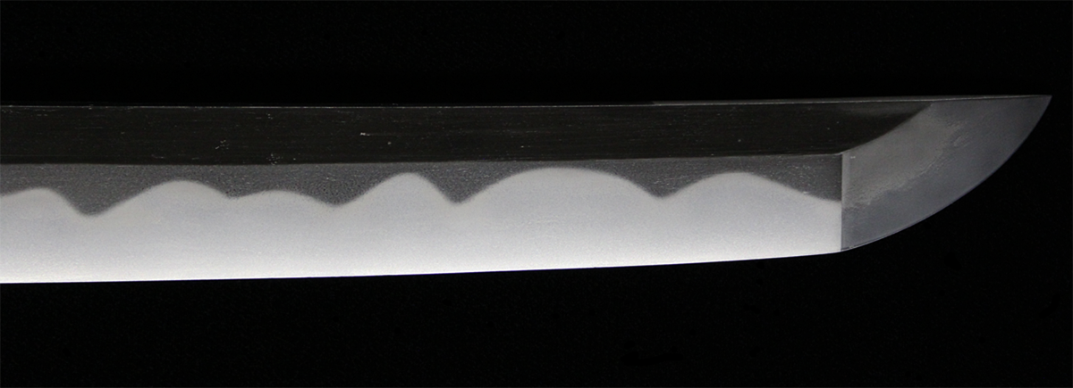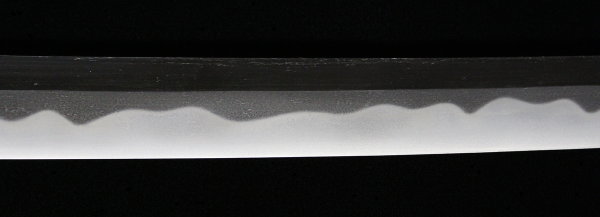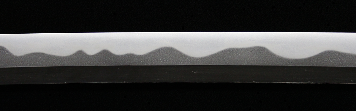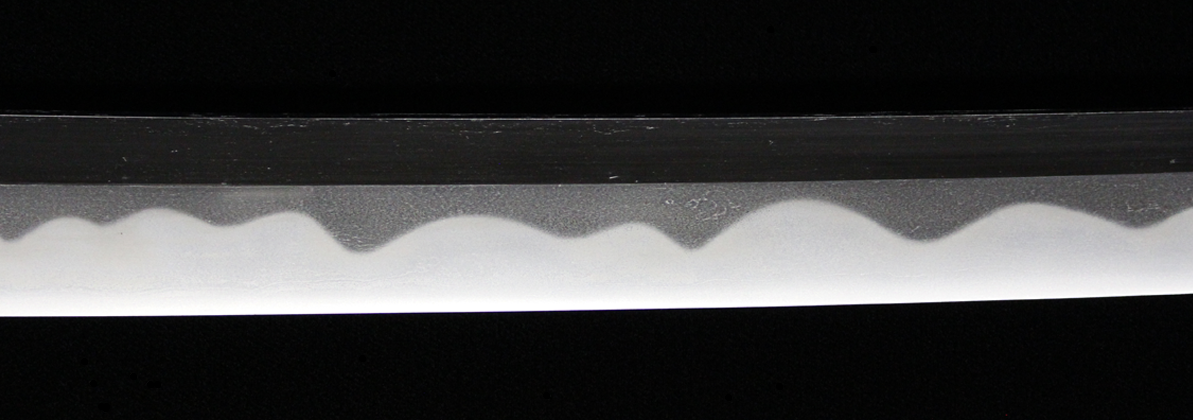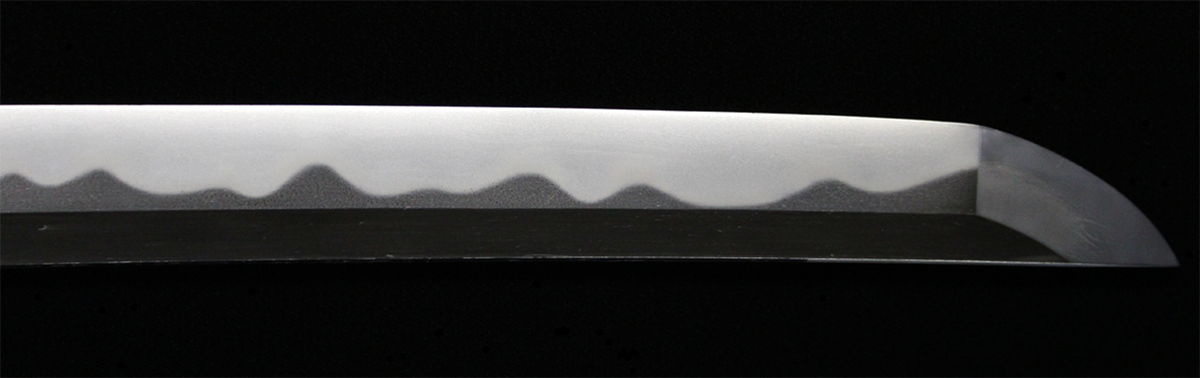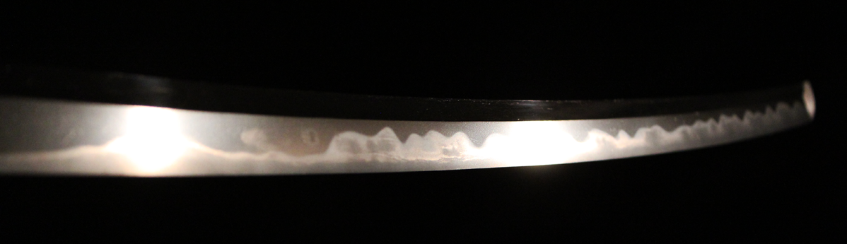 反りの浅いものが多い同工であるが、本作は身幅・反りと頃合い良く華美な作柄で、典型的な大阪新刀です。
