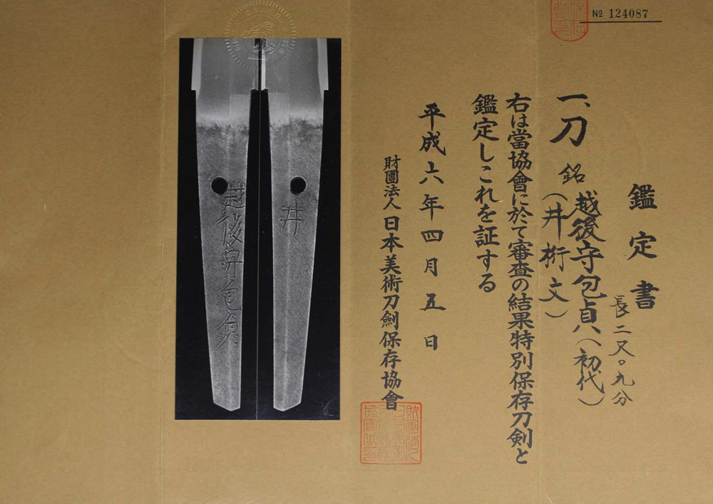 日本美術刀剣保存協会 特別保存刀剣
