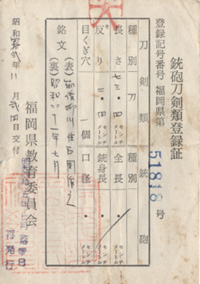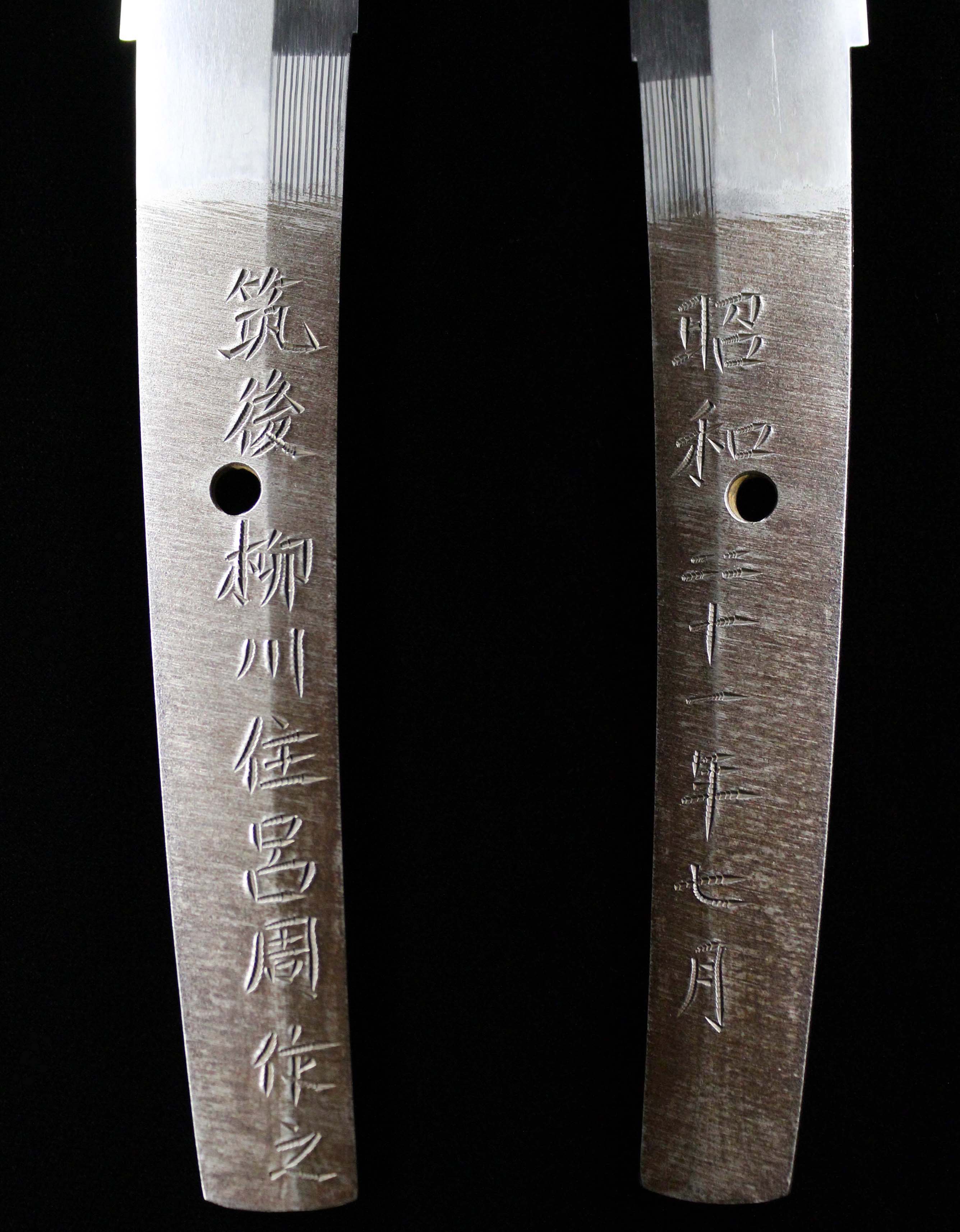 本刀は隅谷刀匠への入門から1年後に修行を終え、福岡へ戻った直後に制作されたものです。 国宝の写しに、師の元で学んだ丁子刃を迷いなく見事に表現させた18歳の若者が、並々ならぬ素質の持ち主であった事が本刀より読み取れます。 呂周銘は若き日に使用した大変数の少ないの前銘です。
