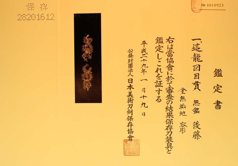 金這龍図目貫 無銘 後藤 (金無垢)
